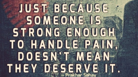 Just because someone is strong enough to handle pain, doesn't mean they deserve it.
