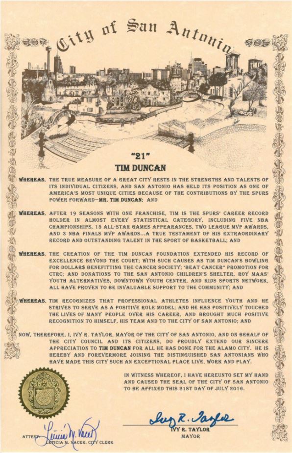 #FlashBackFriday to#TimDuncanDay proclamation one year ago!@spurspic.twitter.com/ka7xb4pnaR