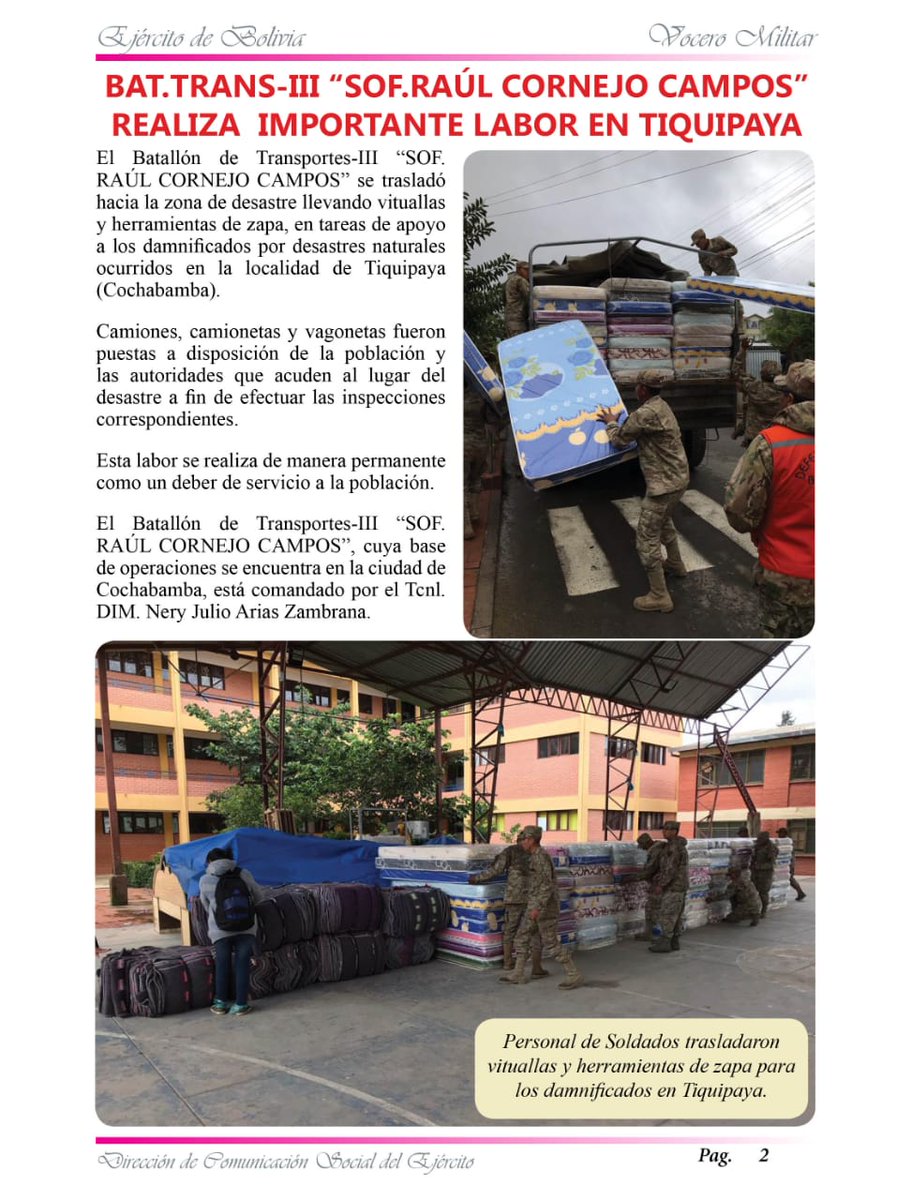 #Tiquipaya#Bolivia Armed Forces in rescue and support operations in region severely impacted by flooding#BoliviaFacts#BoliviaISfreehttps://twitter.com/Ferlopezjulio1/status/1231332603128668160 …