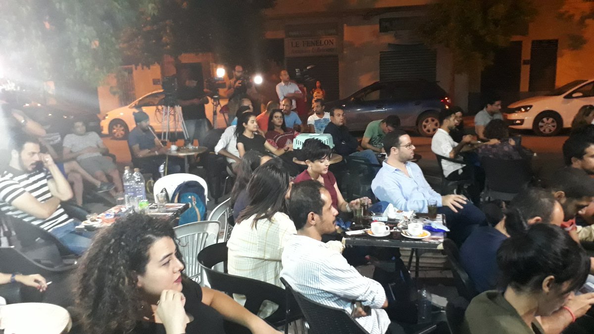 I take that back. As boring as that was—the REAL winner tonight is the Tunisian people and their experience in a new democratic dynamic. A photo being shared on Facebook of people watching the debates in a cafe in Tunis.