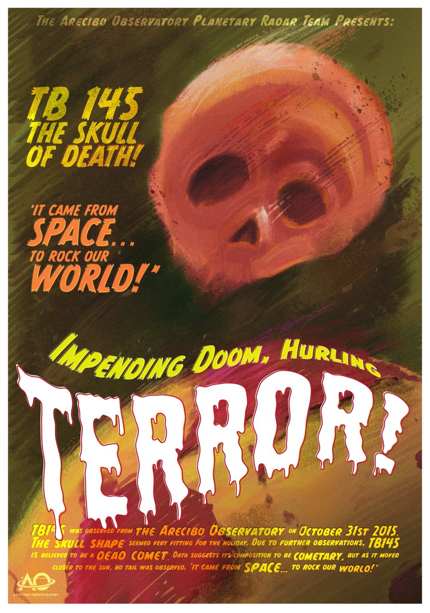 #TodayAO In the spirit of the holiday, we are celebrating the observation of TB 145 back in 2015 by our own@AreciboRadar team.#halloween2019#NASA#TBT#NSFfunded#NSFscience#Vintage#vintagehalloween#movieposter#vintagemoviepic.twitter.com/TScSQek3aW