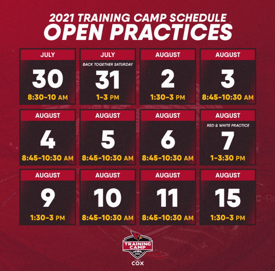 @AZCardinals open practices during training camp. Full pads today. Red & White Practice on Saturday.#TodayInAZ pic.twitter.com/2W0kQIQUrB