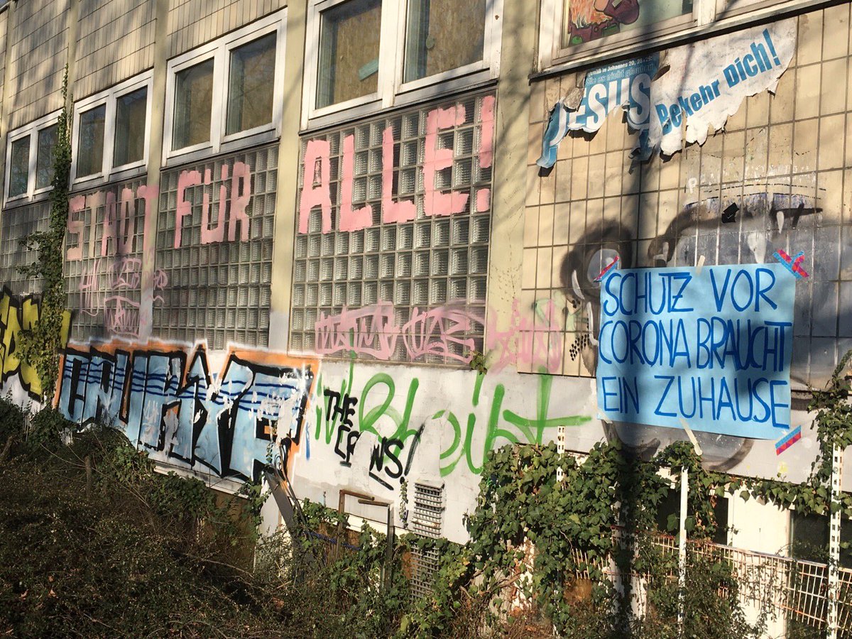 #Mietenwahnsinn demonstriert.#besetzen geht auch in Corona-Zeiten! Vier Wände für alle statt Mauern um Europa! Gutes Leben statt Zwangsräumung! Enteignung first, Kommunismus second!#HousingActionDay2020#TogetherAgainstCorona pic.twitter.com/rILfEYuPln -