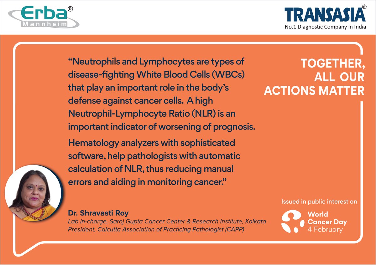 #Togetherallouractionsmatter. Let's make a powerful progress in cancer diagnosis and prognosis.#WorldCancerDay#IAmandIWill#hematology#neutrophil#lymphocyte#screening#labparameterpic.twitter.com/qscKpaBt9Y