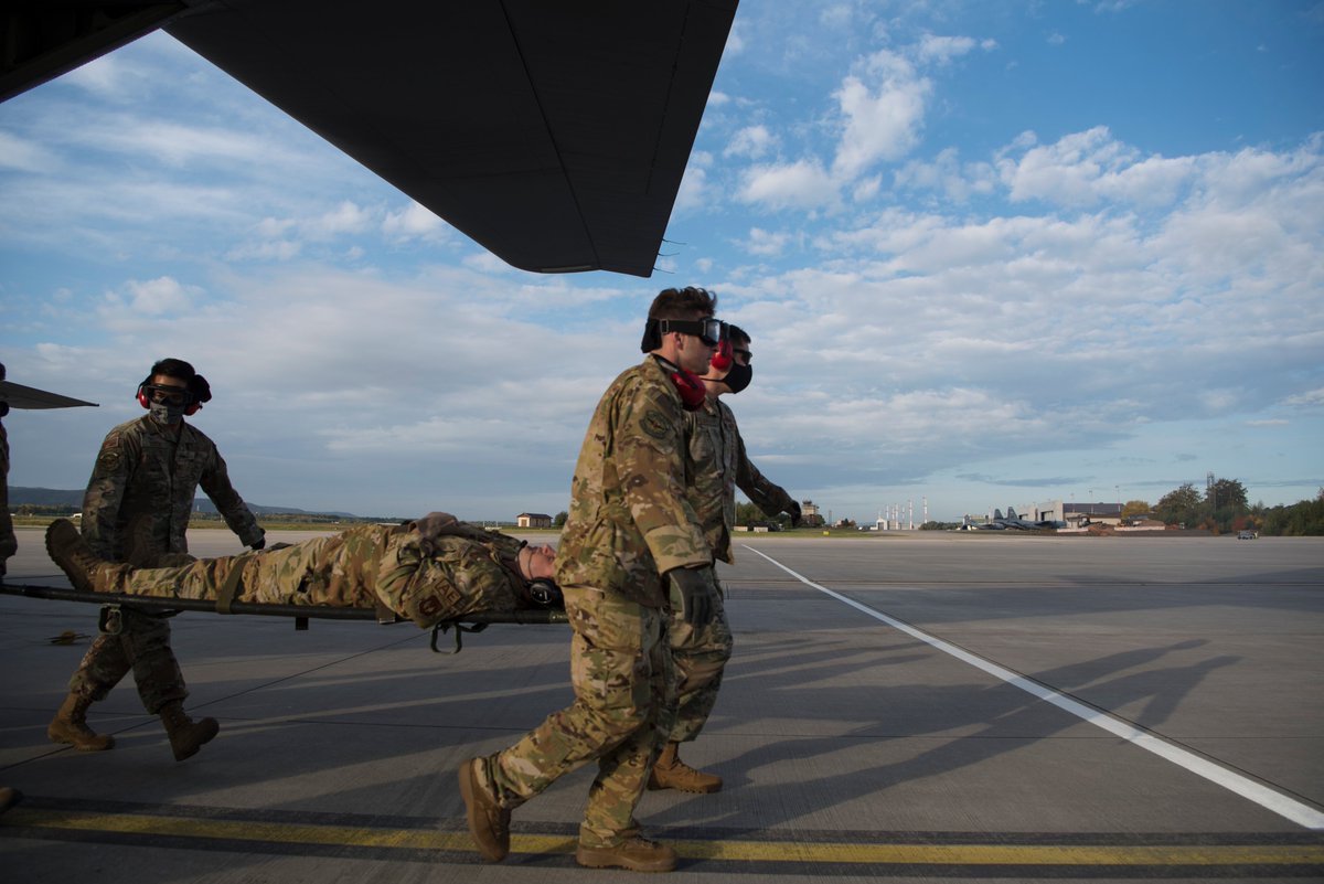 @usairforce Aeromedical Evacuation personnel transport and resuscitate a simulated injured individual during 2021 Aviation Det. Rotation near Powidz, Poland.@US_TRANSCOM is the@DeptofDefense's single manager for Global Patient Movement.#TogetherWeDeliver@USAFHealth@DoD_DHApic.twitter.com/yxDJuUiYo0