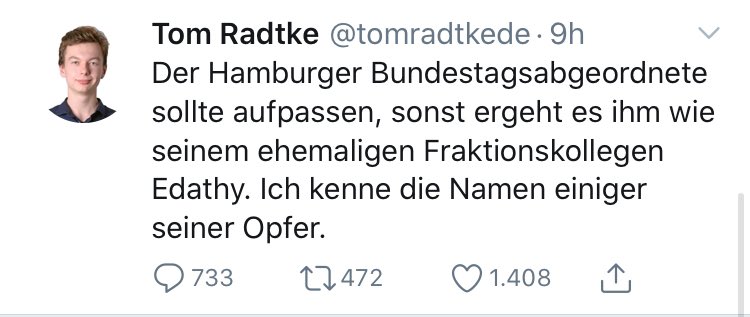 #TomRadke braucht aus meiner Sicht professionelle Hilfe. Der verbaut sich gerade seine Private und berufliche Zukunft. Die Familie und Freunde müssen hier eingreifen. -