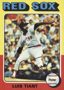 #RedSox 1975: Tiant made 35 starts & logged 260 IP. He went 18-14 with 18 CG & 142 strikeouts. He went 3-0 in the post season. On 10/4/75 Tiant went the distance in Game 1 of the ALCS, allowing just 3 hits & 1 unearned run with 8 K's: BOS 7, OAK 1.#Topps pic.twitter.com/HG7ImYoqyz