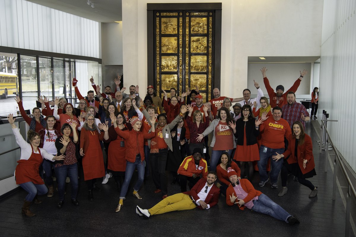 @Chiefs! We're ready for Sunday! Staff from all over the City wore their favorite gear today for Red Friday. OP is turning red for the@Chiefs this week. See more of our city's#ChiefsKingdom