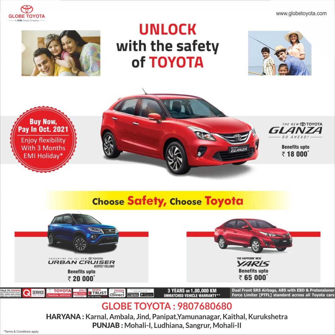 Irresistible offers on Incomparable performers from Toyota. Drive home happiness with best offers on Urban Cruiser, Yaris and Glanza from Globe Toyota. Book a test drive now. Globe Toyota: 9807680680.