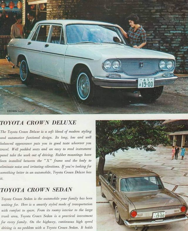 #Toyota#Crown Deluxe. This car was sold in Japan, US, Australia and Europe. Base price was $2305. Its 90hp engine provided 140km/h maximum speed. Stylistically the car looked modern without popular tail fins and having the 1970s look front glass line (no curves).#Тойотаpic.twitter.com/7B73CV6zGc