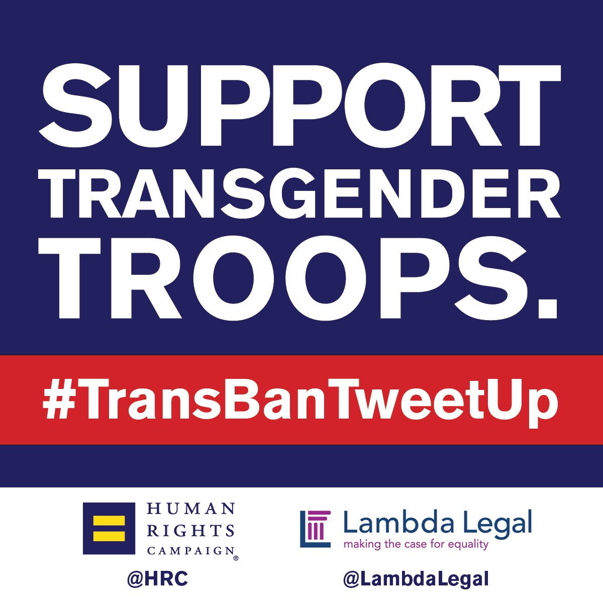 @realDonaldTrump impulsively tweeted a ban on our transgender troops. Today we stand united to#ProtectTransTroops. I'm proud to join@HRC and@LambdaLegal in a#TransBanTweetUp to show my commitment and support! pic.twitter.com/dMfdqO2uiw
