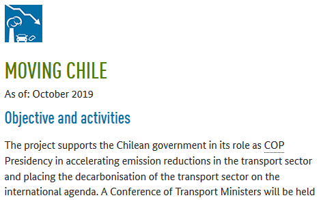 supports the Chilean government in its role as #COP25Chile Presidency in accelerating emission reductions in the#transportsector. More about the activities