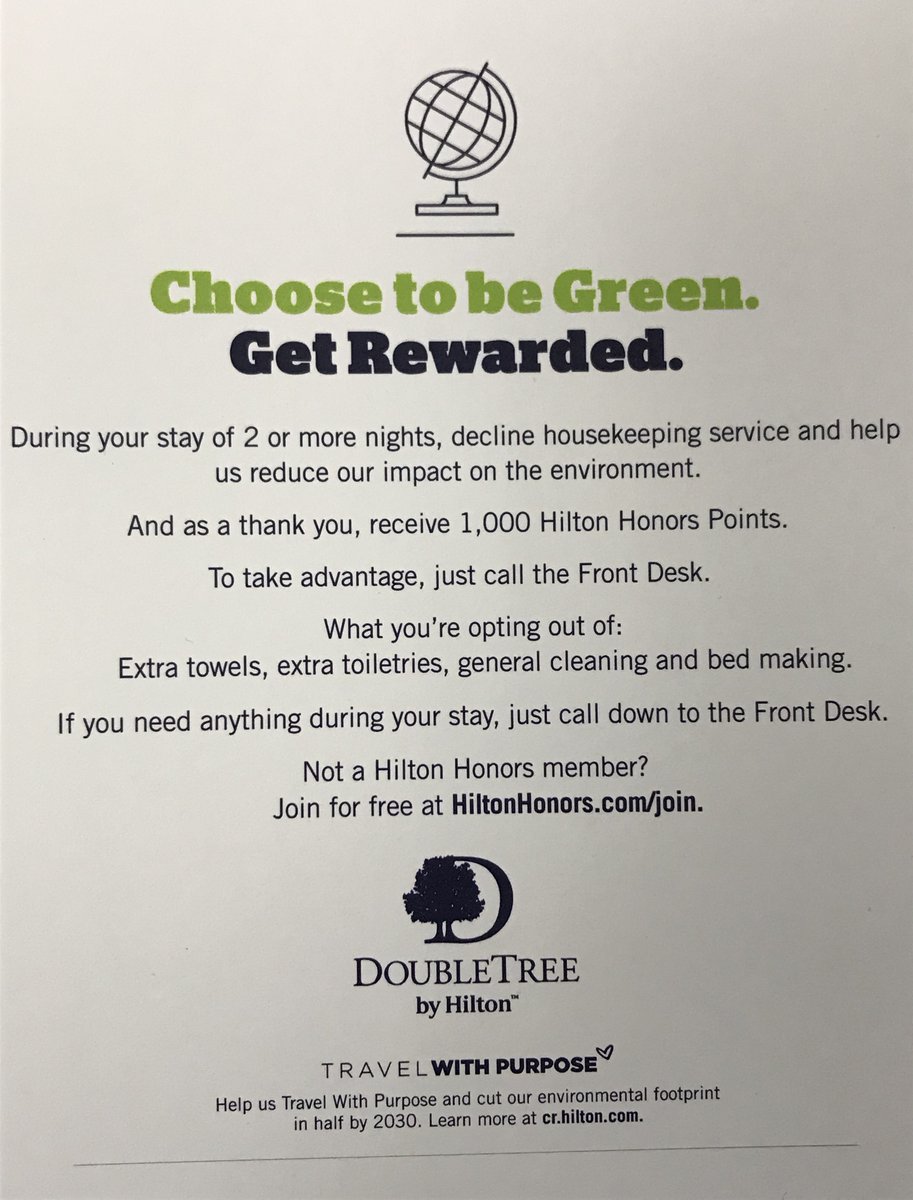 #doubletreebyhiltonwashingtondcsilverspring is proud to participate in the#ChooseToBeGreen program with#Hilton.#TravelWithPurpose pic.twitter.com/dIphgH4TlU