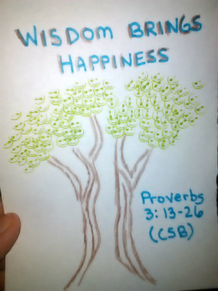 Wisdom Brings Happiness - " She is a tree of life to those who embrace her and those who hold on to her are happy." Proverbs 3:18 (CSB)