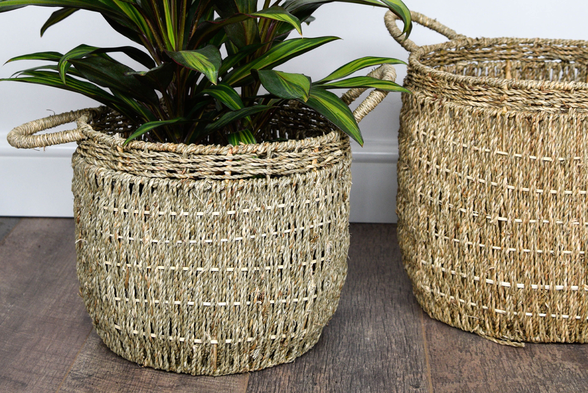 Hand finished seagrass basket set, part of our 2020 Tribal Collection and a SS19 Star Performer!