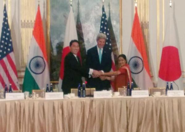 Sushma Swaraj holds trilateral talks with US, Japan