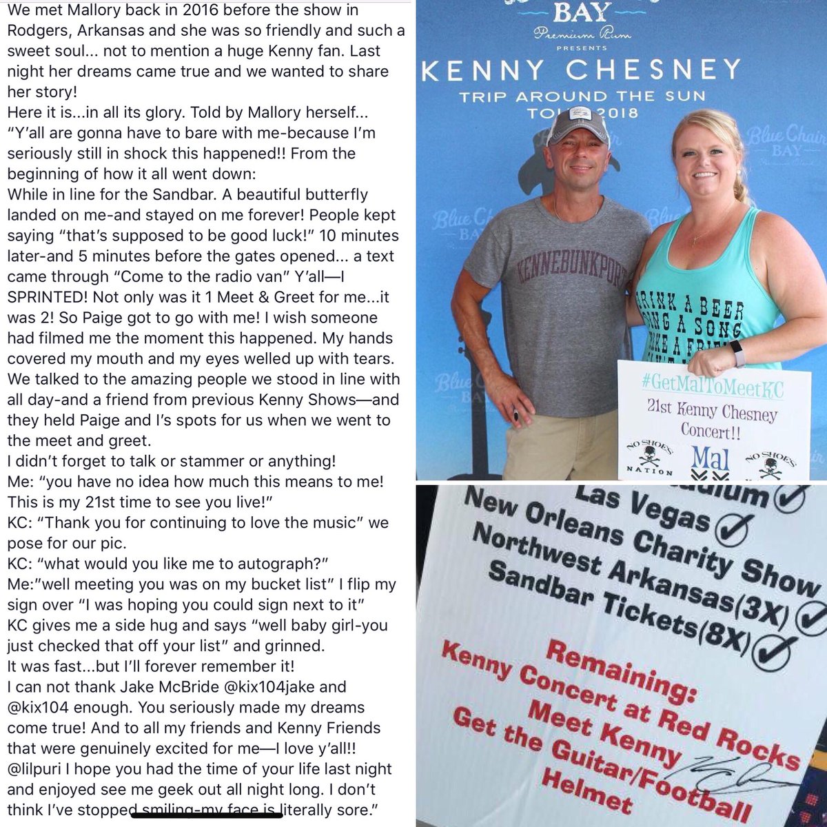 @Mal_Mounce who got to meet@kennychesney last night before the Rogers, AR show. We’re so glad@Kix104@Kix104Jake made it happen for you. Thanks for sharing your story with us Mallory!#TripAroundTheSun pic.twitter.com/lpWqfuJwdB