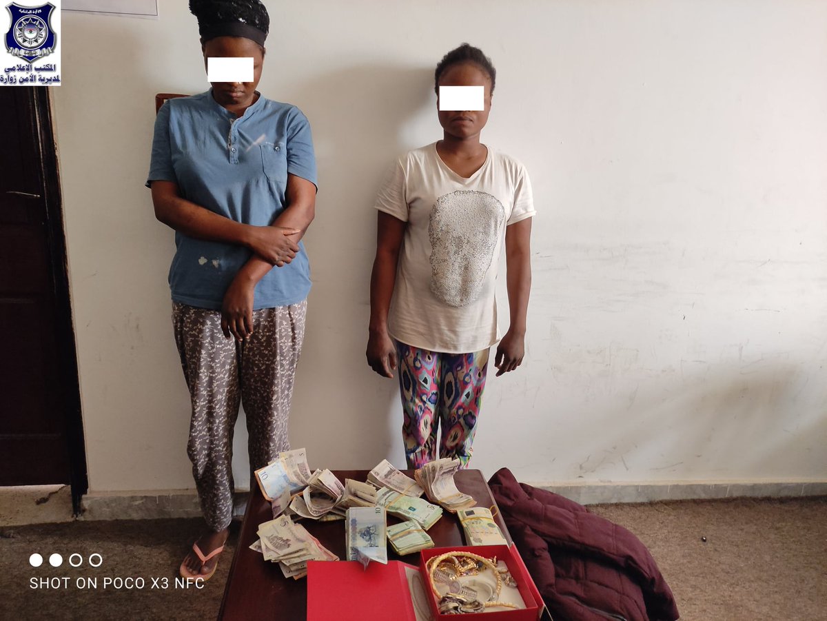#Nigeria on charges of theft at their employers’ houses. Gold and cash found in their bags while attempting to escape to#Tripoli. pic.twitter.com/li62X3IlOl
