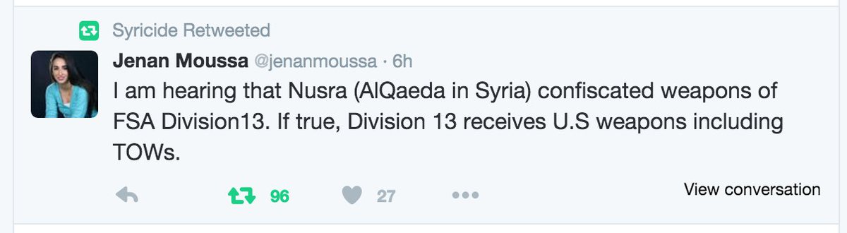 Moderate rebels give US provided weapons to AlQaeda again. Yup.