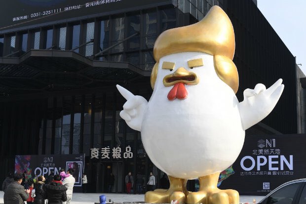 #HonorsWorld Check out this#TrumpRooster in front of a shopping mall in Taiyuan, China#yearoftheroosterpic.twitter.com/op8QYquvrZ