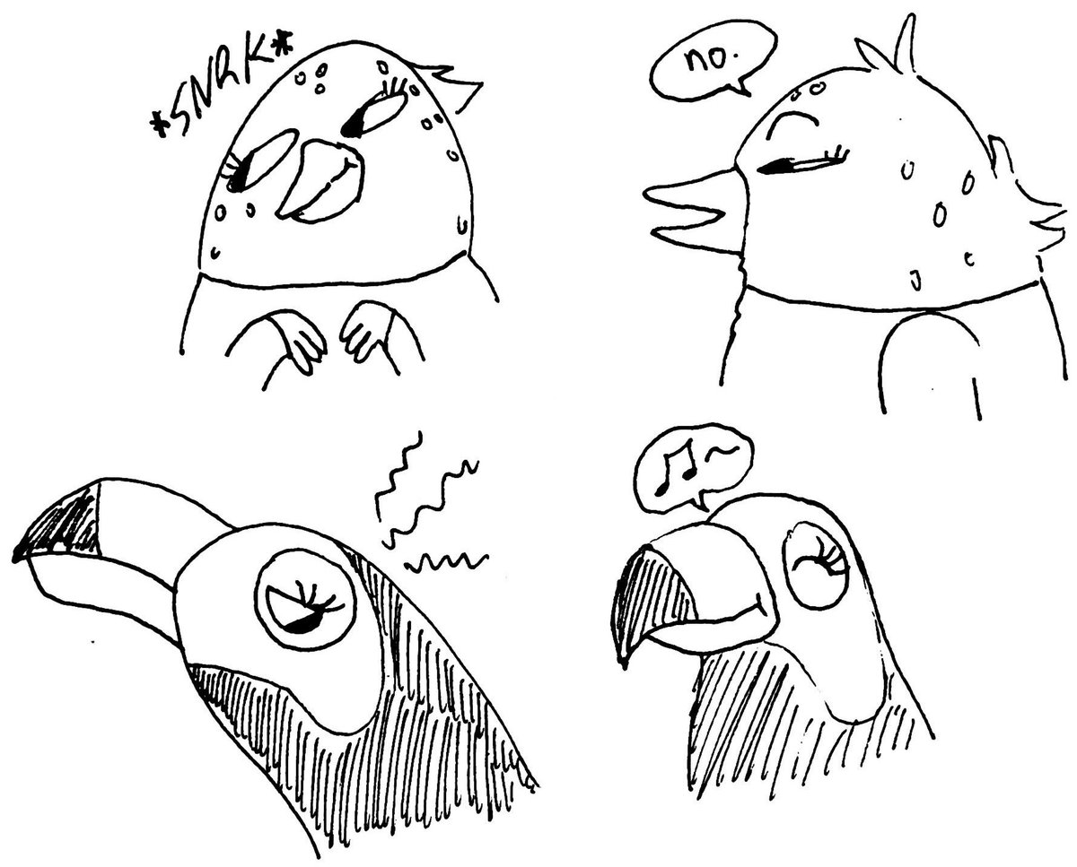 Here's my character design model sheet of the Goodfeathers drawn colored in the style of