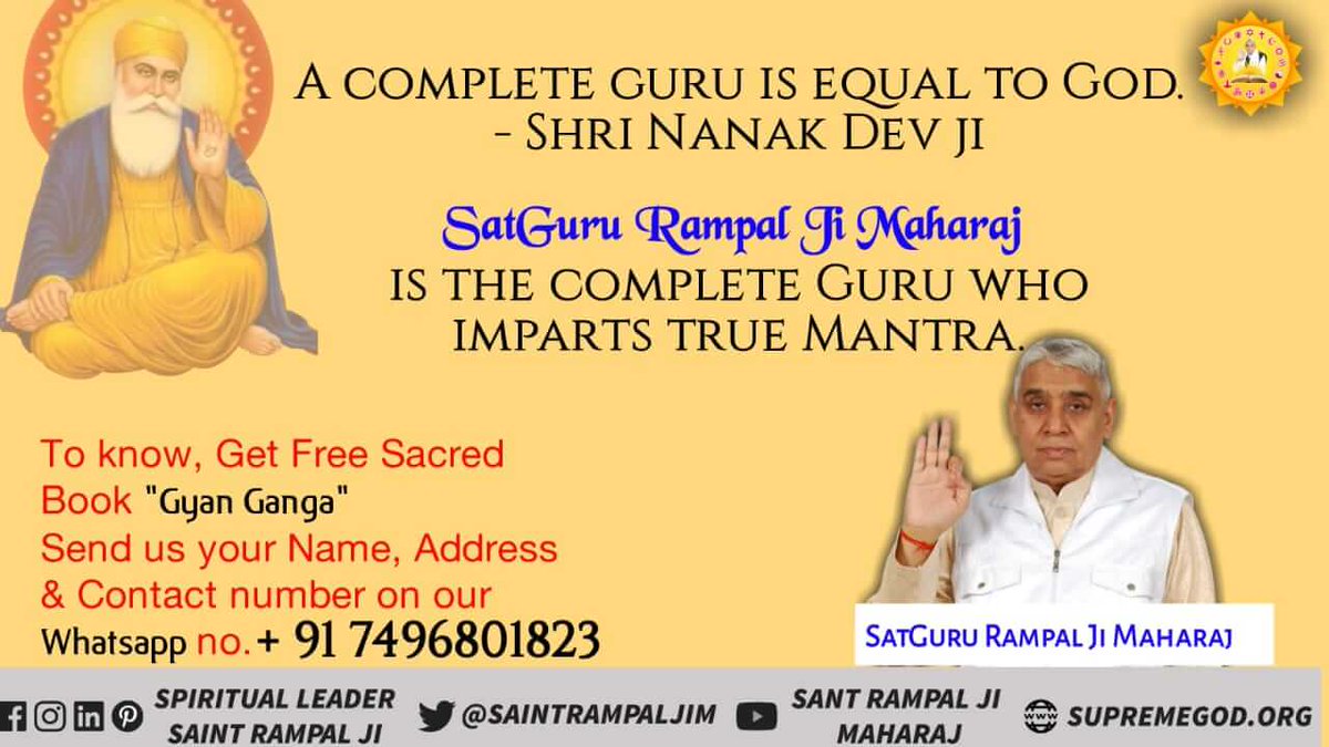 #TuesdayThoughts Saint Rampal ji is the Baakhabar, the last prophet, and the last nabi. Please visit Satlok Ashram YouTube channel.@SatlokChannelpic.twitter.com/AVQyZuEoV1