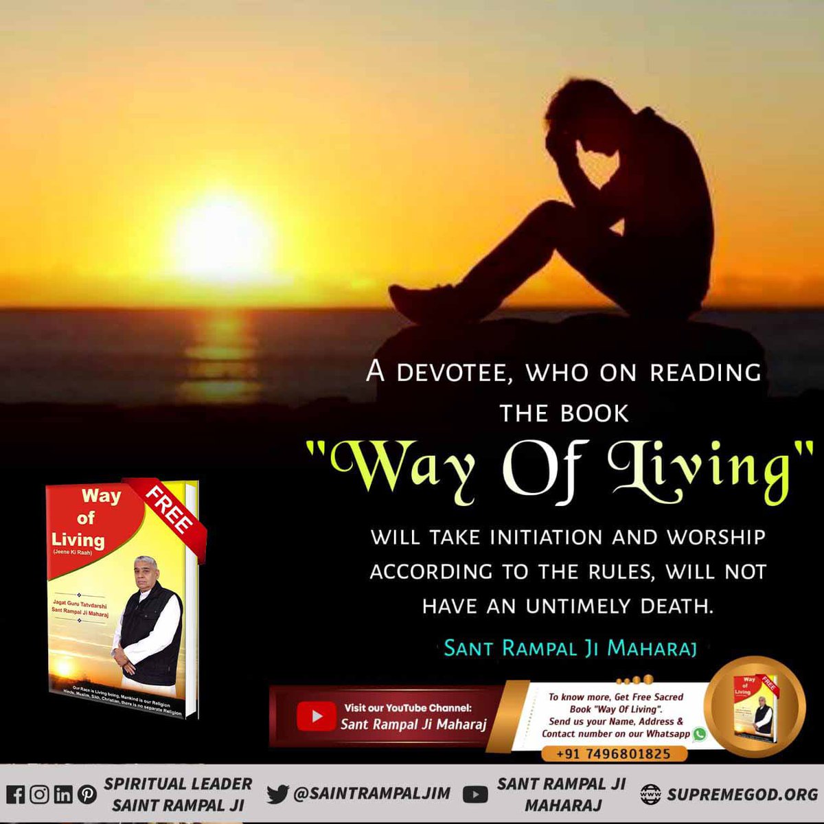 #TuesdayThoughts A DEVOTEE, WHO ON READING THE BOOK "Way Of Living" WILL TAKE INITIATION AND WORSHIP ACCORDING TO THE RULES, WILL NOT HAVE AN UNTIMELY DEATH. Sant Rampal Ji Maharaj FOR MORE INFORMATION VISIT SANT RAMPAL JI MAHARAJ YOUTUBE CHANNEL. pic.twitter.com/FeBdTiLo3p
