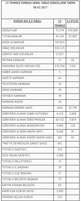 It's led to the dismissal of some 150,000 civil servants, the arrest of 80,000, the closure of 200 media outlets - but now