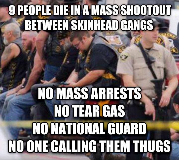 Black men: THUGS Muslim men: TERRORISTS White men: biker brawl