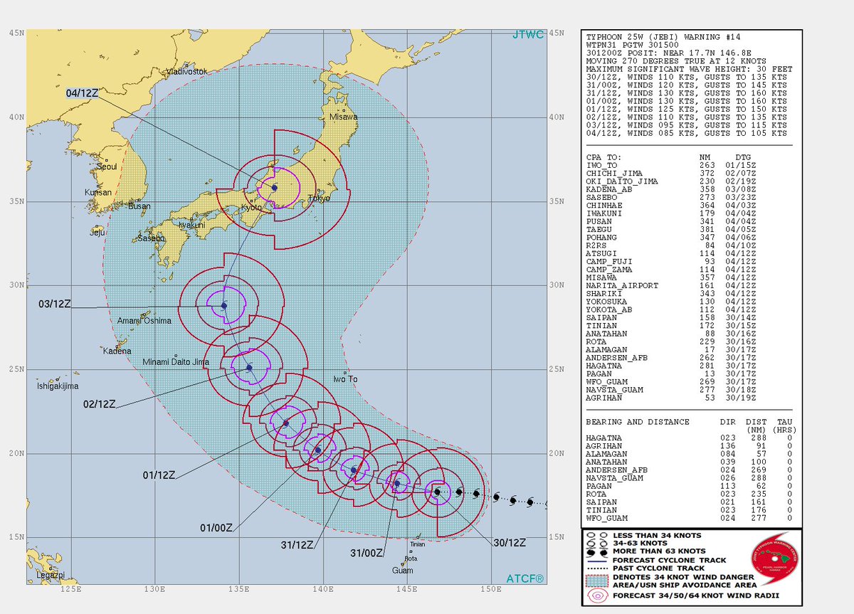 #TyphoonJebi looks to be revisiting Japan close to where#TyphoonCimaron was recently. Both JMA & JTWC have a similar track. The later forecasting "Super" in less than 24 hrs.#JapanTyphoon pic: himawari8pic.twitter.com/lE2qcWv6Br