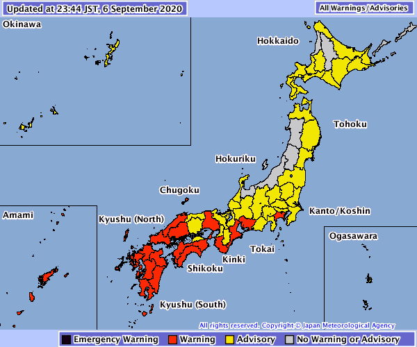 #TyphoonHaishen: 7 million people issued evacuation advisories in Japan as record-level rainfalls, landslides and floods hit southern Kyushu - 2nd typhoon to hit country in 1 week after#TyphoonMaysak- with forecast winds of up to 216 km/h and rainfall of up to a huge 500mm pic.twitter.com/OmWU8cBDAR -