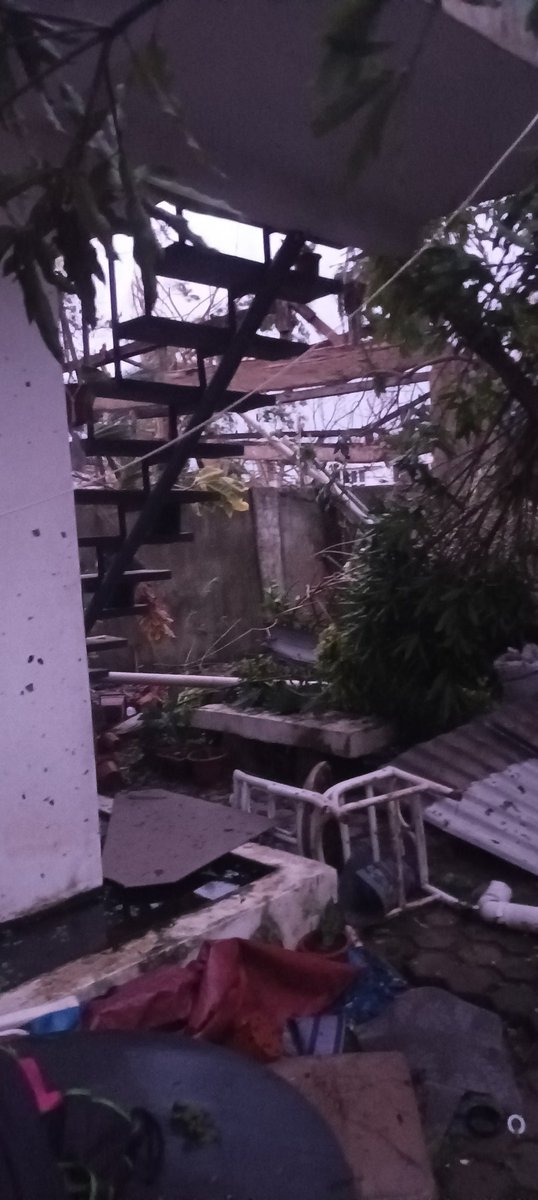#TyphoonOdette A bad typhoon named Odette hit my place in the Philippines. It was so bad the roof was flying away, the walls were shaking, our windows were shattered, trees were falling, even metal posts. The experience itself was terrifying (1/9) pic.twitter.com/KaXh3N9t8c