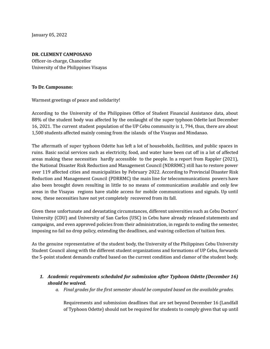 LOOK: UP Cebu University Student Council (USC), along with various student-led organizations of the university forwards the call for