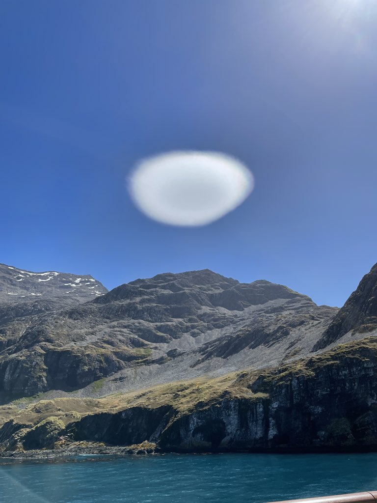 View from my balcony. A lenticular cloud over Hercules Bay, South Georgia Island. Maybe it’s time for me to start writing sci fi?