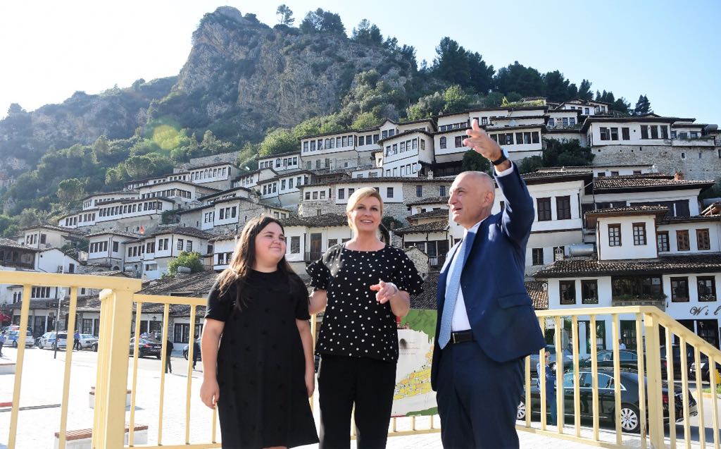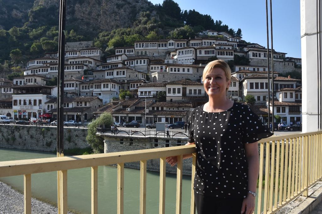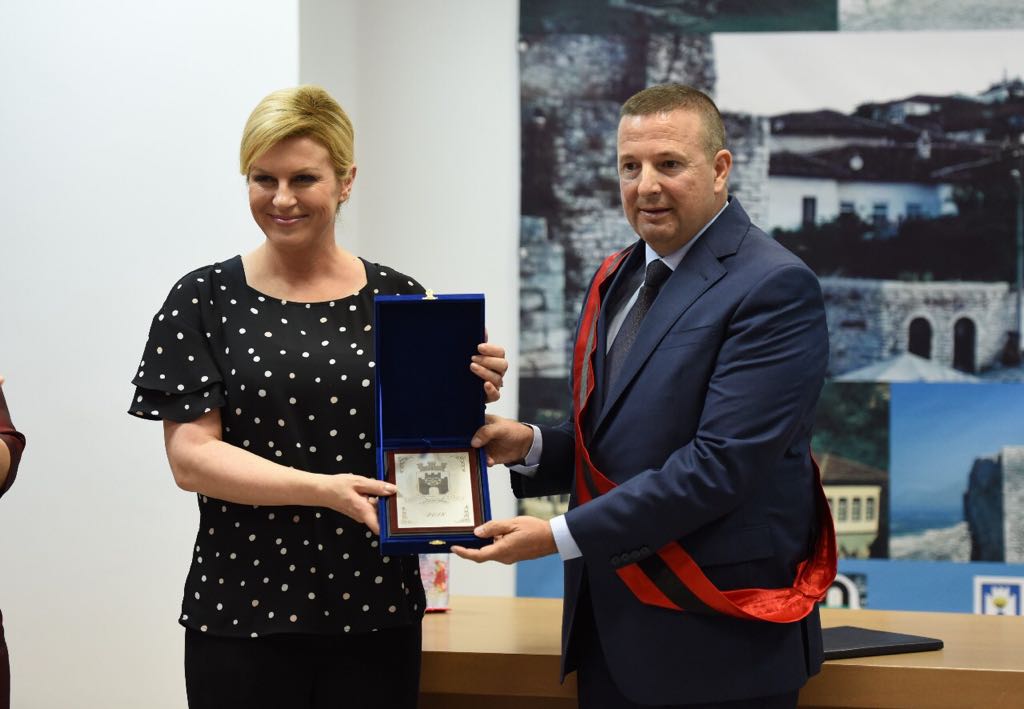 #Berat, the President of#Croatia,@KolindaGK. Honorary citizen of the home of the famous medieval iconographer#Onufri, the city of one above another windows and the pearl of#UNESCO World Heritage.