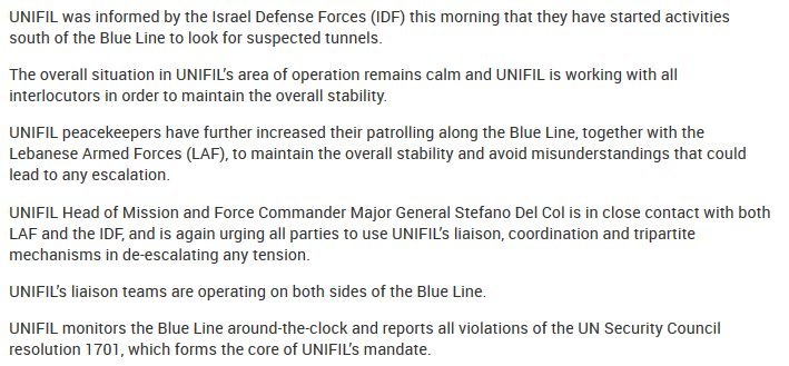 #UNIFIL statement on the discovery of tunnels along the Blue Line in south#Lebanon
