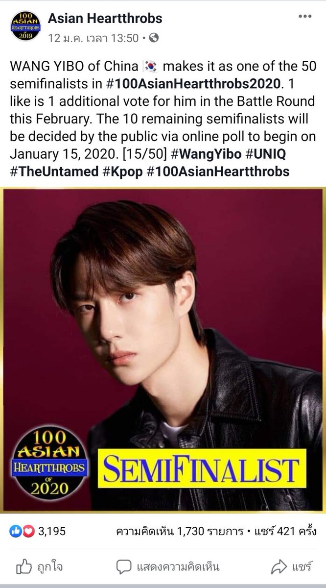 makes it as one of the 50 semifinalists in #100AsianHeartthrobs2020. 1 like is 1 additional vote for him in the Battle Round this Feb.#WangYibo#UNIQ#100AsianHeartthrobspic.twitter.com/RmJivegesV