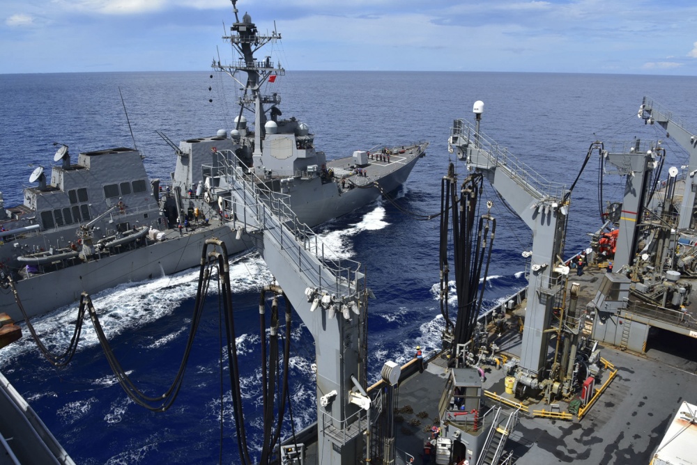 @USPacificFleet guided-missile destroyer USS Ralph Johnson#DDG114 approaches the@MSCsealift replenishment oiler USNS Tippecanoe#TAO199 in preparation for an underway replenishment in the South China Sea.#ForgedByTheSea#UNREP#FreeandOpenIndoPacific.pic.twitter.com/hli5EFoMY0