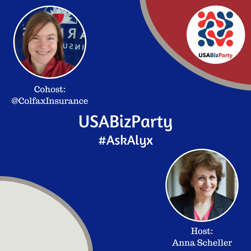 #USABizParty this week! We'll be joined by@ColfaxInsurance so you can#AskAlyx all things insurance! See you tomorrow at 1 PM EDT.pic.twitter.com/EL1KyXTGsu