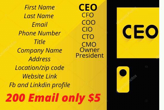 Order me to find any information collection and any company address, website, email, zip code, city, for the development of your business. My Fiverr Link https://www.fiverr.com/tuhin501624?up_rollout=true …