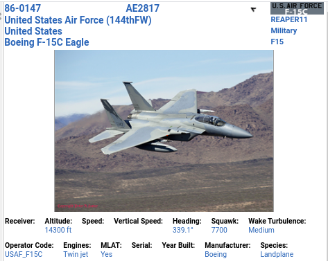 (144thFW) Boeing F-15C #Eagle (AE2817) Squawking 7700