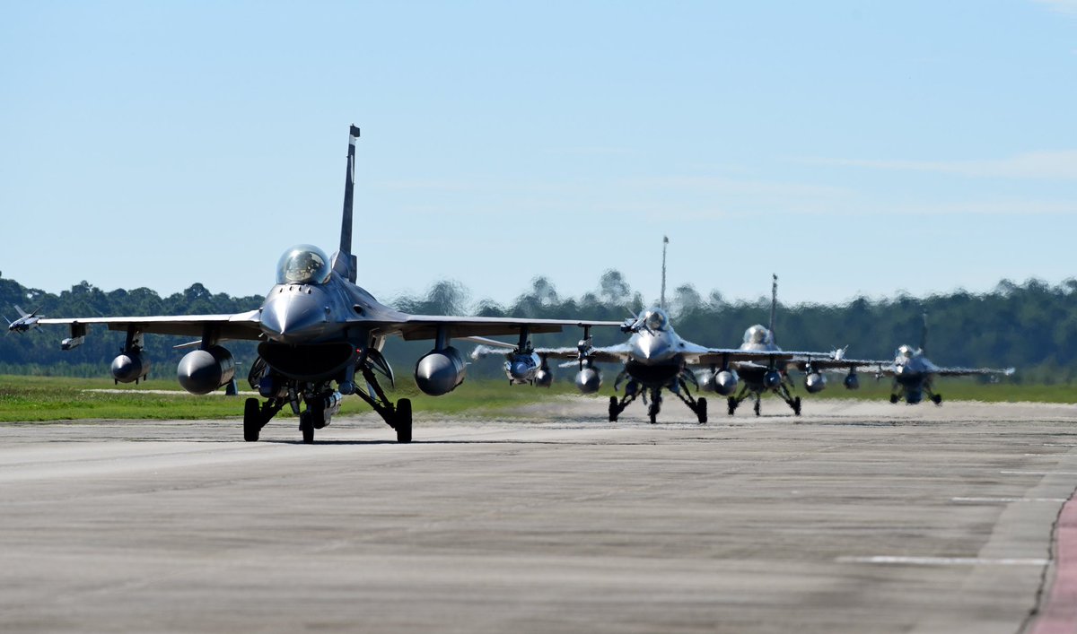 U.S. Air Force F-16 Fighting Falcons from the 20th Fighter Wing,