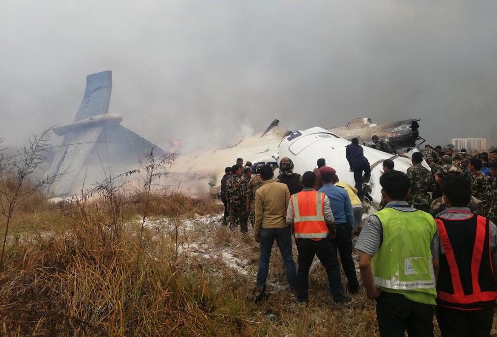 passenger plane #USBangla with about 67 people on board skids off runway and crashes near#Kathmandu airport,#Nepal, many feared deadpic.twitter.com/qpXFBeeMas