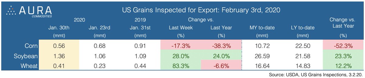 #USDA#USA Grain Inspections - February 3rd Read the report on Aura: http://auracommodities.com pic.twitter.com/ZUXUbPJqrB