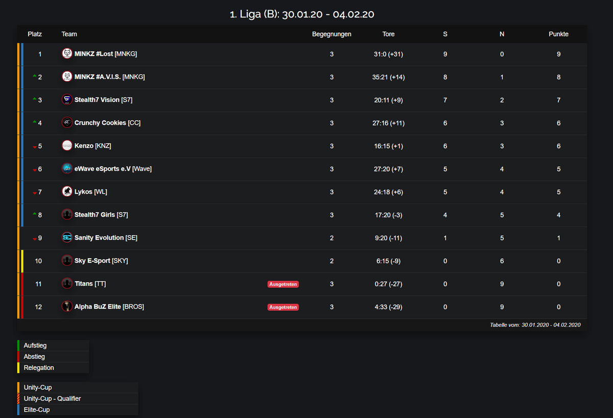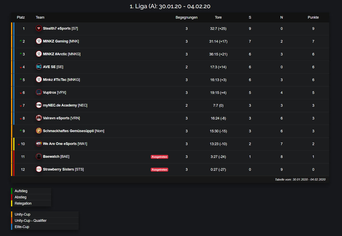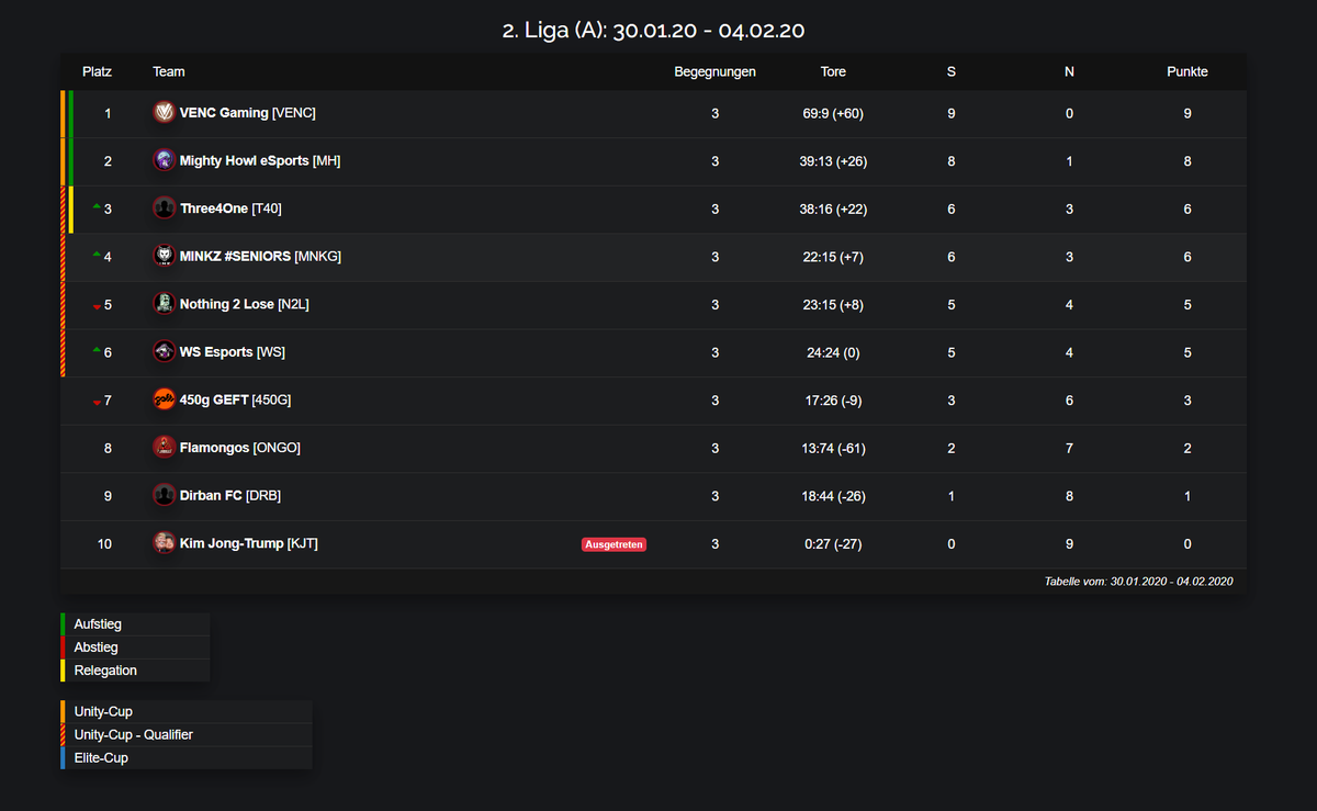 Wegen der Serverprobleme am Sonntag und der deshalb nicht stattgefunden Begegnungen, stehen noch nicht alle Ergebnisse des 3. Spieltages fest. Diese werden während des 4. Spieltages nachgeholt. Hier die vorläufigen Tabellen des 3. Spieltages.