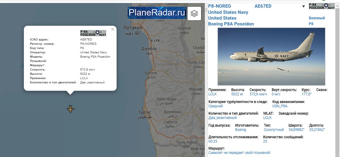 #USNavy P8A just arrived on station for eastern Mediterranean surveillance mission. Hex AE67ED. 1531z pic.twitter.com/wGOtEjm5Ve