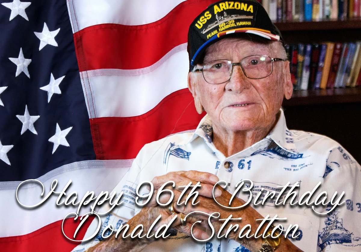 Happy Birthday Donald Stratton! Don is one of 5 living USS Arizona survivors. And the youngest at 96. All the best Don!