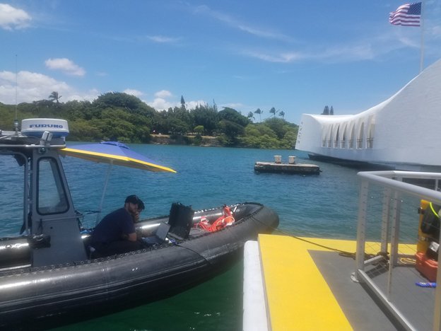 #USSArizona,#USSUtah, & other sites. Data will be used to monitor changes and to effect a long term fix to the out-of-service memorial dock.pic.twitter.com/5GAJr95HCy