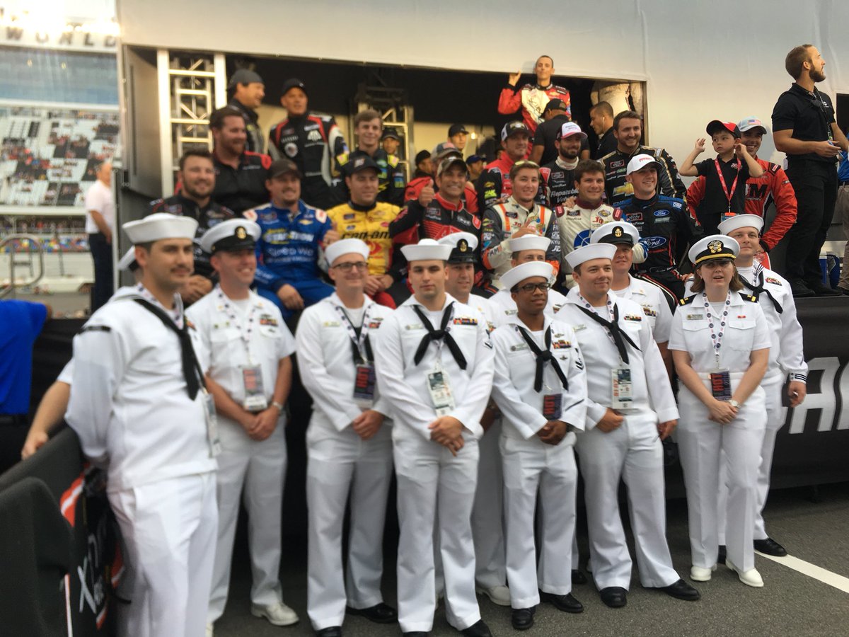 #NASCARSalutes in true form. The@XfinityRacing drivers pose with sailors from the#USSGeorgia@USNavy#NASCAR pic.twitter.com/PQYxda2feO