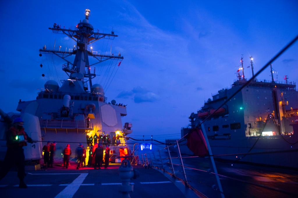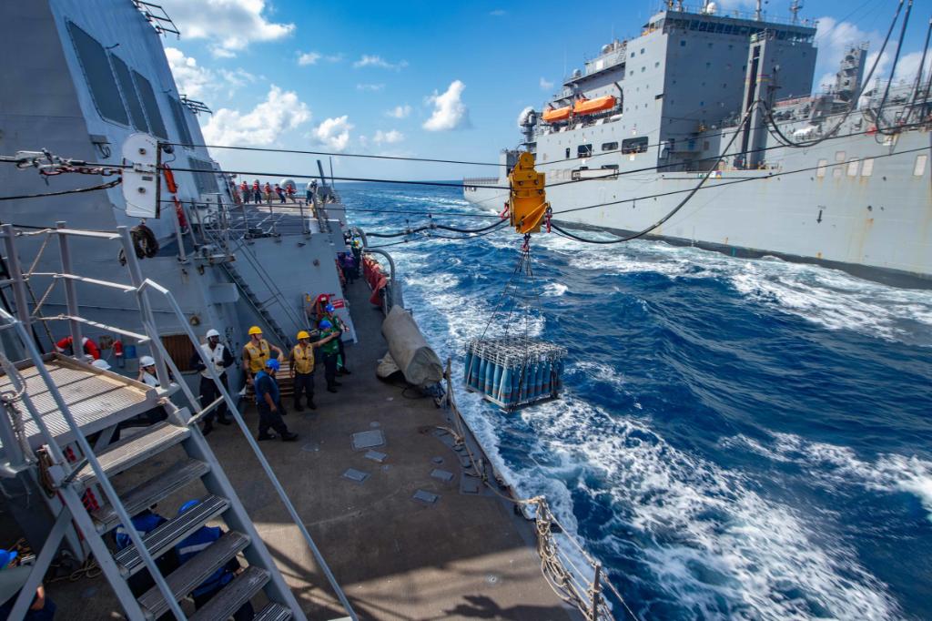 #NavyPartnerSHIPS#USNavy Sailors aboard the Arleigh Burke-class guided-missile destroyer#USSJohnSMcCain conduct a replenishment-at-sea with the Mashū-class fast combat support ship JS Ōmi of the Japanese Maritime Self-Defense Force. pic.twitter.com/9tpO9ThmIz